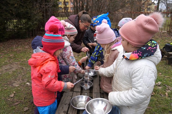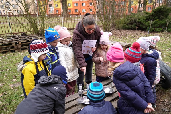 Jednou z pravidelných aktivit je kroužek Přírodníček, který se koná přímo na zahradě mateřské školy. Děti se při něm seznamují s přírodními materiály, pozorují rostliny i drobné živočichy a učí se vnímat proměny přírody v průběhu roku. Aktivity jsou vedeny hravou formou a přirozeně podporují dětskou zvídavost, samostatnost i fantazii. „Tentokrát jsme s dětmi hledali vodu ve všech koutech zahrady, sbírali ji pipetou na další pokusy, zkoušeli filtraci pomocí jednoduché filtrační sestavy, pozorovali změny barvy a společně jsme vše zhodnotili. Pustili jsme se také do tvořivých aktivit z bláta a hledali jsme odpovědi na otázku, jak se hlína proměnila v bláto,“ popsala učitelka Marcela Navrátilová, která ekologické aktivity ve školce od samého počátku zaštiťuje, dokáže do nich poutavě a zcela nenásilně vtáhnout jak děti, tak i jejich rodiče a provozní zaměstnance.