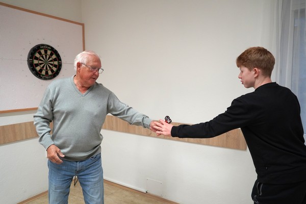 První zastávkou byl Městský klub seniorů Louky, kde deváťáci navštívili místní seniorky a seniory. Společně si zahráli miniturnaj v šipkách, vyzkoušeli hru šupec a hlavně si popovídali. Úsměvy a příjemná atmosféra dokazovaly, že podobná setkání dokážou obohatit obě strany. Poté se žáci vydali na fotbalové hřiště, kde je čekal výklad o fungování sportoviště a jeho zázemí. Po cestě zpět do školy se ještě zastavili u stavby nové lávky, aby se dozvěděli více o probíhající výstavbě. Projektový den zakončila diskuse ve škole na téma stáří. Žáci měli možnost mluvit o životních etapách, zkušenostech i o tom, proč je důležité vážit si starší generace. Celý den ukázal, že škola nemusí znamenat jen sezení v lavici – učení může být zážitkové, inspirativní a propojovat generace v našem městě.