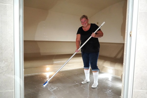 Jednou z těch, kdo mají chod wellness zóny na starosti, je wellness pracovnice a pokladní Andrea Mazurová: „Pondělní sanitární den začínáme důkladným úklidem celého wellness. Čistí se parní sauna, kde je hygiena obzvlášť důležitá, stejně tak finské sauny, infrasauna, vířivka i ochlazovací bazének. Používáme kartáče, speciální přípravky a dvojitou dezinfekci, aby bylo všechno opravdu čisté. Je to práce na celé dopoledne. Po sanitaci následuje leštění skel, madel, nerezových prvků i zrcadel, kontrola relaxačních zón a příprava prostoru na provoz.“ Samozřejmostí je také úklid a použití dezinfekce každý večer po uzavření wellness zóny. Přes noc se spouští ozonový generátor, který rozkládá pachové částice a pomáhá udržovat prostředí hygienicky čisté.